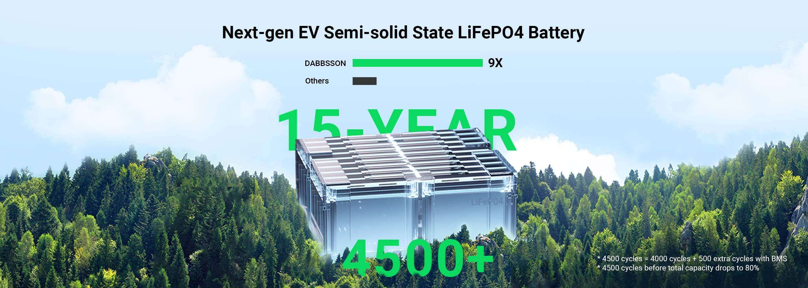 - 15-year lifespan and 4500 charge cycles with an EV semi-solid state LFP battery